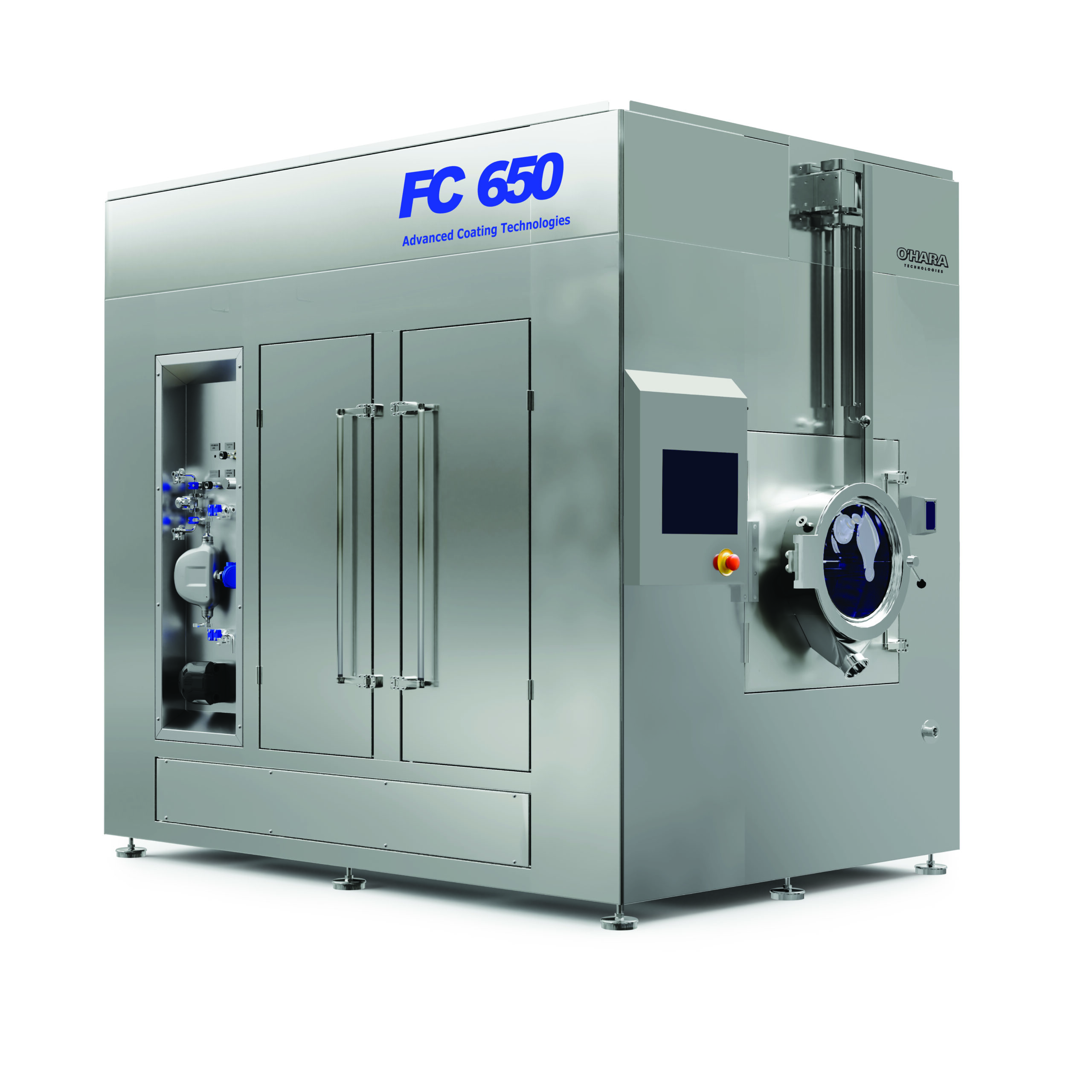 Our Fastcoat™ fixed-pan tablet coating systems are designed to supply a quick and reliable solution to your production requirements. Supplied with a remote air handling unit with dehumidification and HEPA filtration as standard. Additional features such as pre-heat and humidification are also available to provide an optimal coating environment, year-round. Anti-bearding spray nozzles are supplied on our O’Hara Professional Coating Arm (PCA), which is a block-style manifold with built-in tubing for liquid and compressed air to allow for a sleek and organized appearance. Upon completion of each batch, tablets are unloaded automatically with our reverse unloading system.