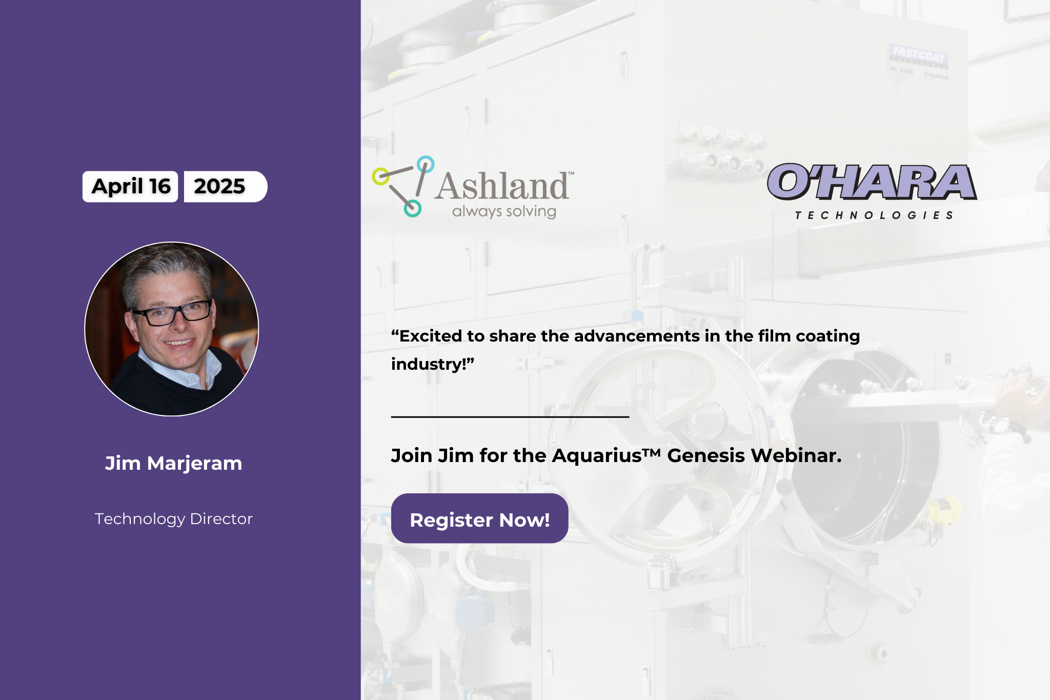Jim will be joining Ashland’s industry experts to discuss the advantages of Aquarius™ Genesis during an upcoming global webinar. This event is designed for professionals seeking to enhance production efficiency, ensure compliance, and optimize their coating processes.